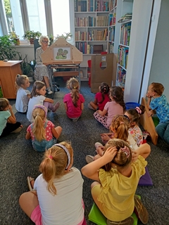 Za nami pierwsze zajęcia w Bibliotece „Nad Skałą”. Jeszcze raz przeżywaliśmy wspólnie nasze wakacyjne przygody.