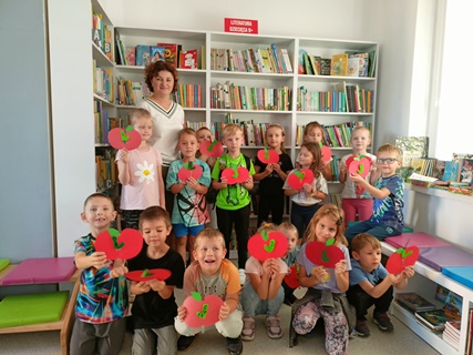 Na naszych środowych spotkaniach nie może zabraknąć głośnego czytania. W tym tygodniu była to opowieść z czerwonym jabłkiem w jednej z głównych ról. Potem z tektury, włóczki i filcu wyczarowaliśmy kolorowe jabłuszka.