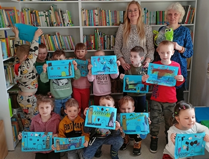 Mili goście w Bibliotece „Nad Skałą”. Grupa Foczki z Przedszkola Norlandia.