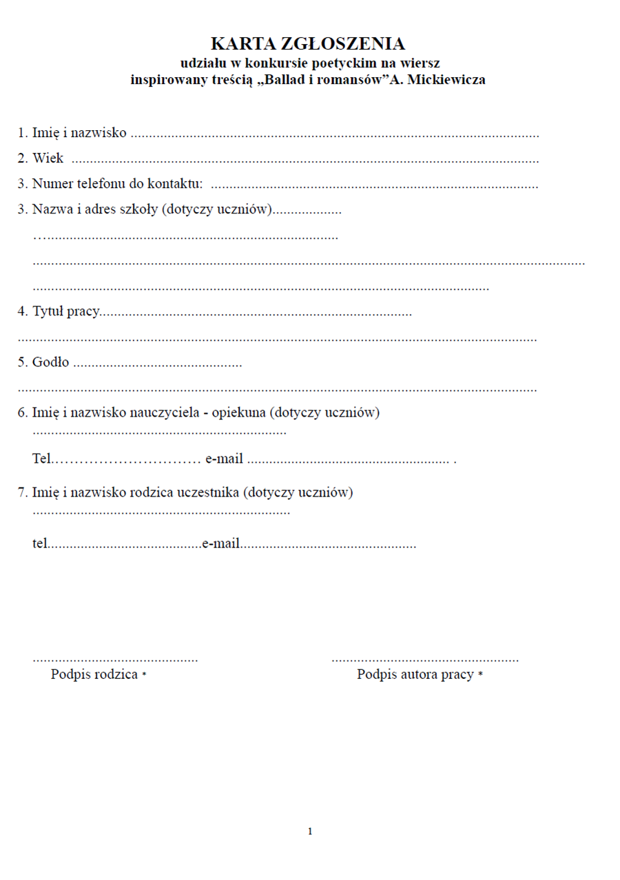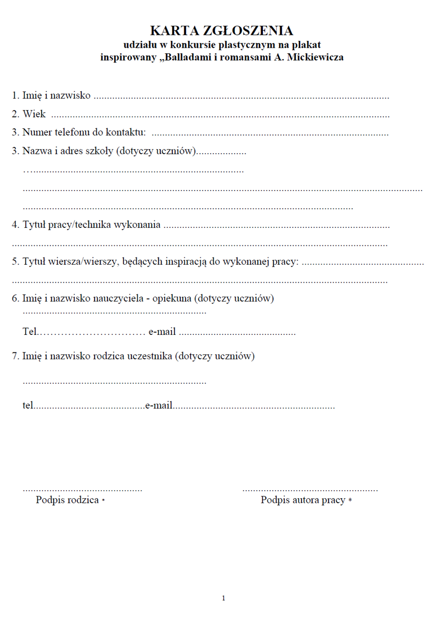 Poniżej zamieszczamy Regulaminy konkursów i Karty zgłoszeniowe. W celu pobrania należy kliknąć na zdjęcie i zapisać grafikę na dysku. Następnie wydrukować i wypełnić.