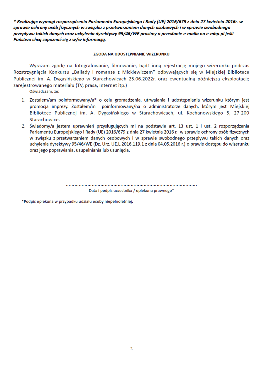 W ramach programu będziemy realizować projekt pt. Ballady i romanse z Mickiewiczem. Nasze działania adresowane są zarówno do młodzieży od 13 do 18 roku życia jak i osób dorosłych. Partnerami w realizacji projektu są I liceum Ogólnokształcące im. Tadeusza Kościuszki w Starachowicach oraz Państwowe Ognisko Plastyczne. Zaplanowaliśmy szereg wydarzeń kulturalnych upamiętniających tę piękną rocznicę, o wszystkich będziemy informować w mediach lokalnych, na facebooku oraz na naszej stronie internetowej. Już teraz zapraszamy Państwa do udziału w konkursach plastycznym i literackim, skierowanych zarówno do młodzieży od 13 do 18 roku życia oraz do osób dorosłych do 65 roku życia. Regulaminy konkursów dostępne są na stronie internetowej biblioteki e-mbp.pl. Bliższych informacji o konkursach udzielamy pod numerami telefonu 41 274 76 06, 41 274 20 76, 509 490 226.