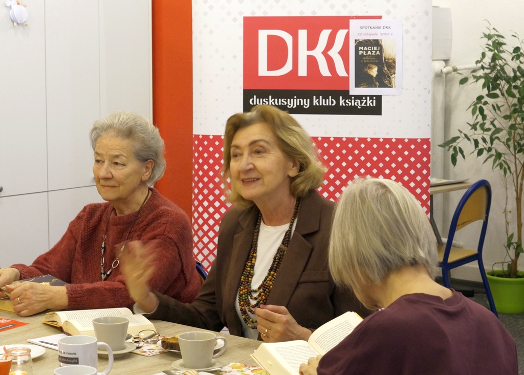 20 listopada 2025 r. grupa czytelników tworzących DKK przy Filii nr 6 miała okazję podzielić się wrażeniami po lekturze książki Macieja Płazy pt. „Robinson w Bolechowie”. To powieść o powiązanych losach dwóch rodzin od przedwojnia do pierwszej dekady XXI wieku. Akcja przeważnie rozgrywa się w Polsce, choć wykracza również poza jej granice. Piękna proza, której uroku nie zeszpeciły bardzo długie zdania i opisy. Autor stworzył wyraziste postaci, tajemnicze i niedopowiedziane, podobnie jak pełen tajemnic i niedopowiedzeń jest świat, w którym żyją. To kolejna z książek wymagająca wyjątkowego skupienia podczas czytania, aby nie uronić ważnych przekazów. Autor napisał ten utwór podobnie jak malarz tworzy obraz w technice temperowej, warstwa po warstwie, starannie dobierając detale. Wiele tu nawiązań do literatury i sztuki dawniejszej i nowożytnej. Kunszt tego dzieła „napisanego obrazami” doceniło jury w 2018 r. nagradzając po raz pierwszy polskiego literata Nagrodą Literacką Europy Środkowej Angelus. Podsumowaniem miłego spotkania, wzbogaconego słodkim poczęstunkiem i ciepłymi napojami była ocena lektury, która otrzymała 9 punktów w skali 10-punktowej. Kolejne spotkanie zaplanowane jest na 18 grudnia, a wybraną książką „Oddech” Moniki Jaruzelskiej.