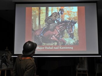 Dzisiejszy wykład Grzegorza Bernaciaka, kustosza Izby Tradycji w Brodach zgromadził prawdziwych koneserów historii majora Hubala. Dzięki temu prelegent mógł opowiedzieć o mało znanych faktach z życia Henryka Dobrzańskiego. Zaczął od wyjaśnienia pseudonimu Hubala, które było zawołaniem bojowym rodu Dobrzańskich herbu Leliwa. Następnie słuchacze poznali życiorys bohatera, jego udział w ceremonii zaślubin z morzem, okoliczności zdobycia na wojnie czterech Krzyży Walecznych i jednego Krzyża Virtuti Militari. Nie zabrakło opowieści o przedwojennej kawalerii, życiu koszarowym, wojskowych dowcipów i zwyczajów.