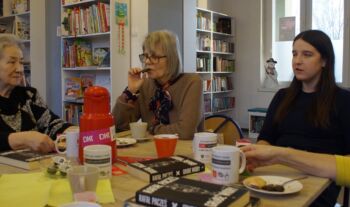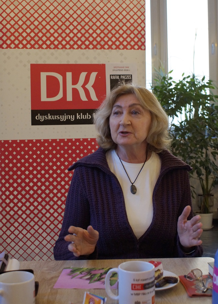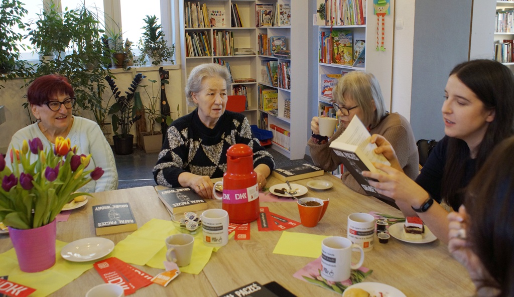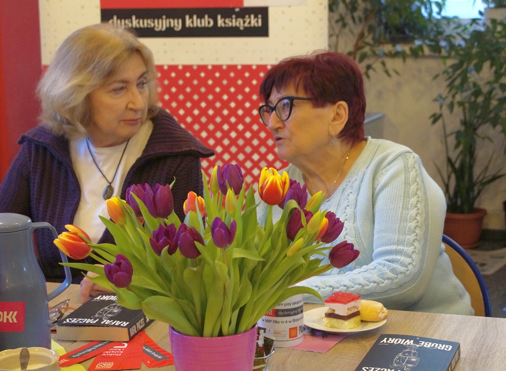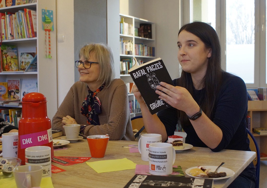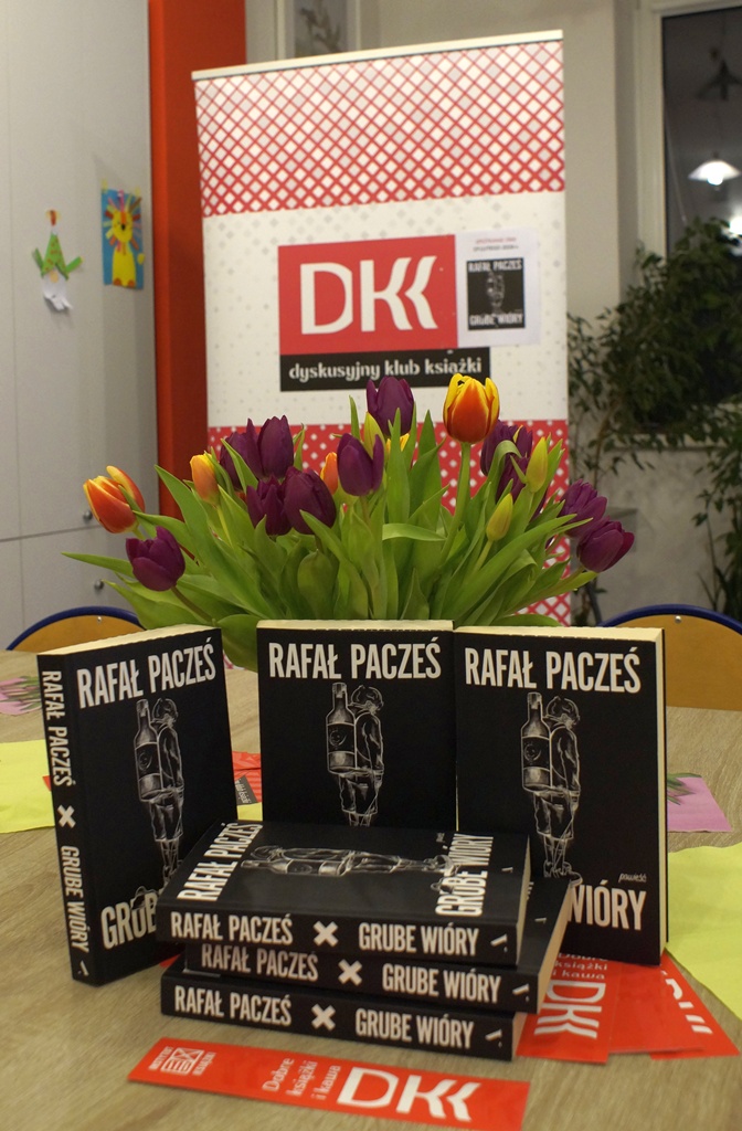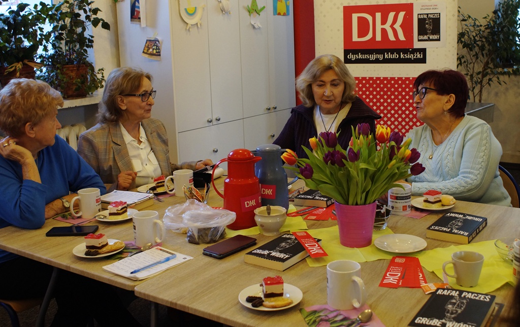 19 lutego 2026 r. podczas kolejnego spotkania DKK przy ul. Staszica 9 czytelnicy rozmawiali na temat debiutanckiej książki Rafała Paczesia pt. „Grube wióry”. Akcja utworu rozgrywa się w 2012 r., w Łodzi, w środowisku handlowców. Napisana potocznym językiem, soczystym i barwnym, z punktu widzenia mężczyzny. Nie brak w niej czarnego humoru na temat polskiej rzeczywistości, traktuje natomiast o problemach z nadużywaniem alkoholu, wykorzystaniu pracowników przez pracodawców, zwykłych, życiowych kłopotach. Może obraz tej rzeczywistości jest nieco przerysowany ale wciąż aktualny i zmuszający do refleksji. To szczera opowieść o współczesnych mężczyznach, obarczonych traumatycznym dzieciństwem za sprawą własnych ojców, niepotrafiących stworzyć udanych związków i mających problem z piciem. Ta na pozór lekka i zabawna książka znanego stand-upera uzyskała w opinii klubowiczów 9 punktów w skali 10- punktowej. Spotkanie przebiegło jak zwykle w wesołej atmosferze i przy słodkim poczęstunku. Punktem ciężkości w dyskusji okazał się problem alkoholizmu, z którym zetknął się w jakimś stopniu każdy z nas. Kolejne spotkanie 19 marca, a wybrana lektura to „Raje utracone” E.E.Schmitta.