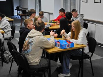 Właśnie zakończył się ostatni etap projektu „Star Town. Legendy gwiezdnego miasta”, czyli warsztaty tworzenia gry wielkoformatowej. Pierwsza klasa Technik Logistyk z Zespołu Szkół Zawodowych nr 2 w Starachowicach podjęła się trudnego zadania zwizualizowania neolegend o Starachowicach, na planszach wymyślonych przez siebie gier. Zabawa świetna, pomysły fantastyczne, gry zaskakujące, a twórcy kreatywni i pełni zapału. Prowadzący spotkanie pan Przemysław Góral z Good Games był pod ogromnym wrażeniem pracy i zaangażowania uczniów. Gry dostępne w „Plastusiu”… Wpadnijcie i zagrajcie.