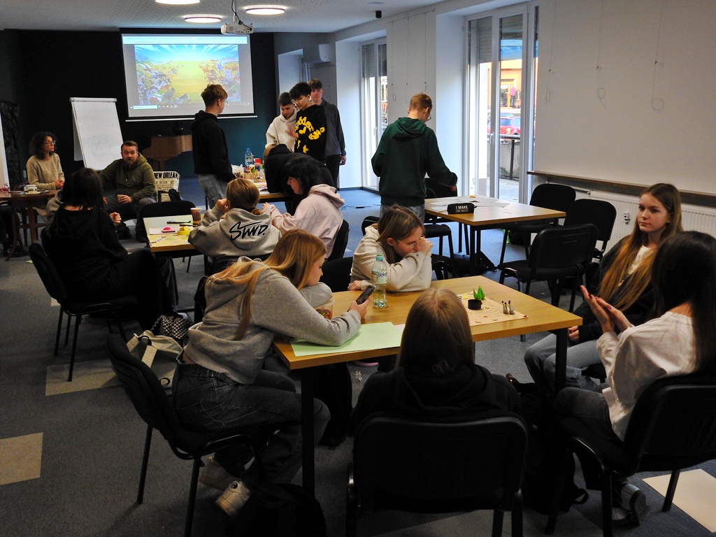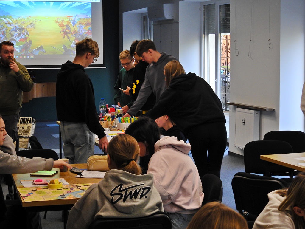 Właśnie zakończył się ostatni etap projektu „Star Town. Legendy gwiezdnego miasta”, czyli warsztaty tworzenia gry wielkoformatowej. Pierwsza klasa Technik Logistyk z Zespołu Szkół Zawodowych nr 2 w Starachowicach podjęła się trudnego zadania zwizualizowania neolegend o Starachowicach, na planszach wymyślonych przez siebie gier. Zabawa świetna, pomysły fantastyczne, gry zaskakujące, a twórcy kreatywni i pełni zapału. Prowadzący spotkanie pan Przemysław Góral z Good Games był pod ogromnym wrażeniem pracy i zaangażowania uczniów. Gry dostępne w „Plastusiu”… Wpadnijcie i zagrajcie.